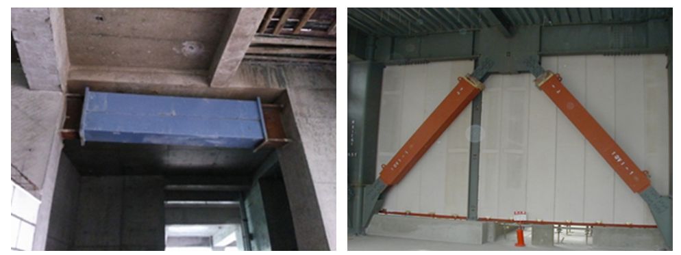 (6)連梁金屬阻尼器,復(fù)旦大學(xué)附屬廈門中山醫(yī)院                                  (7)粘彈性阻尼器,臺(tái)灣某辦公樓