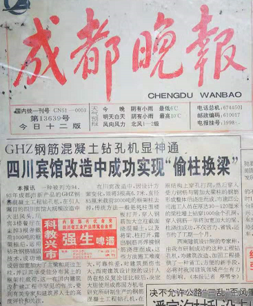 1995年四川賓館改造中成功實(shí)現(xiàn)托梁換柱